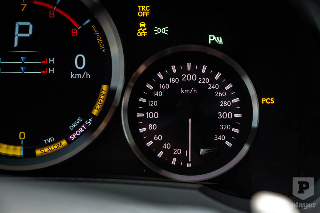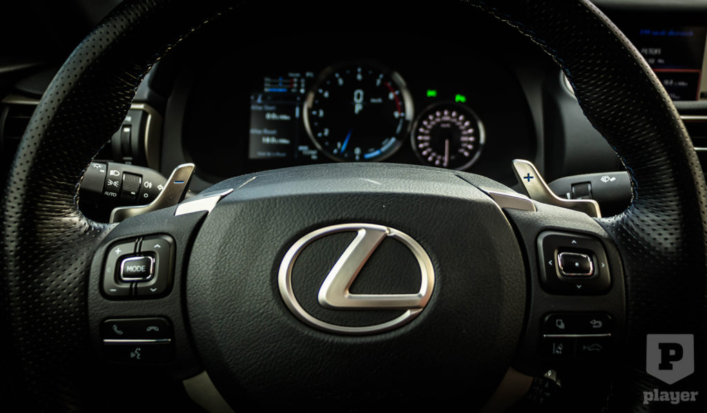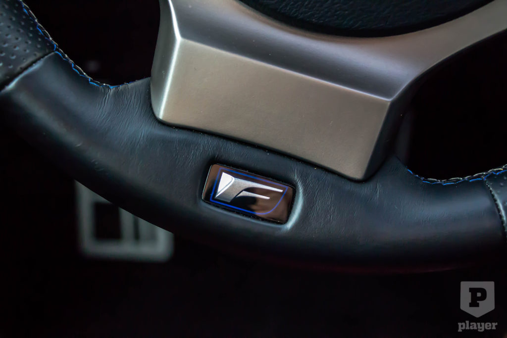Közben rendesen kapaszkodhatunk a vastag kormányban, pont jó a mérete, kellően masszív, jól kézre áll, és kényelmesen terelgethetjük vele az RC F-et.