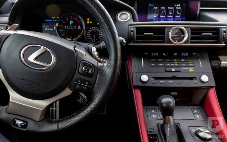 Az RC F belsőépítészetileg olyan, mint ahogy 1985-ben megálmodták a 2010-es évek autóit. A megoldásoknál a fantáziát valahogy korlátozták, a dizájnerek tudata valahogy nem volt igazán felszabadítva, határozottan fáradt és japánosan középszerű belülről, pláne ha az ember átül a szalonban egy autóval arrébb és beül az LC-be, ami pedig maga a csoda.