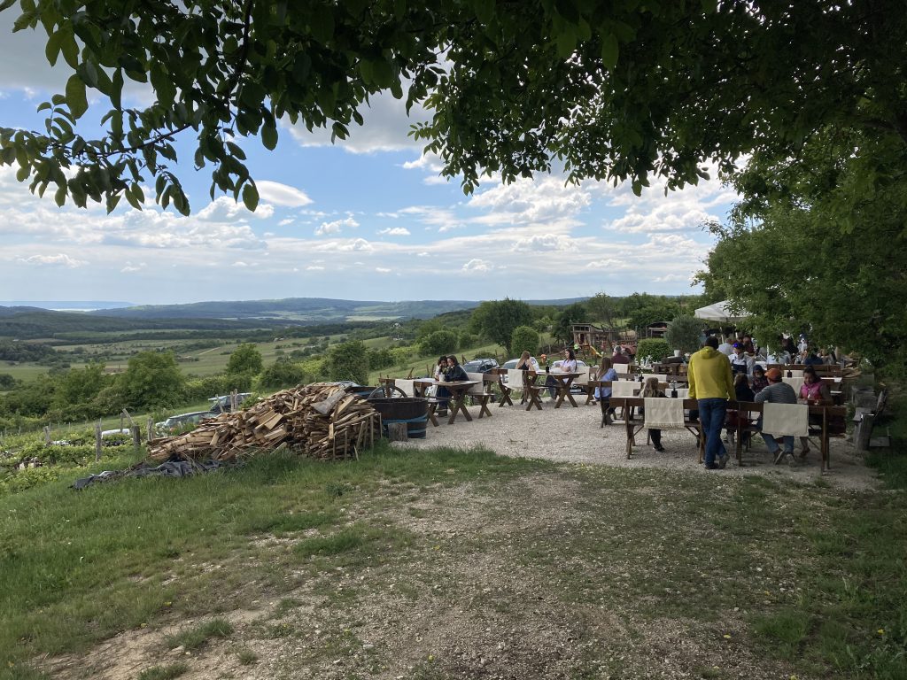 Séta távolságra található a Papok borozója, remek gasztroprogram, óriási panorámával. Hétvégén érdemes foglalni, ottjártunkkor tele volt. Ha pedig ott egy remek hétvége a környéken, akkor ki lehet pipálni szombaton a Tihanyi Piacot, a Placcot, vasárnap a Káptalaltótit, közben pedig beautózni a Káli-medencét.