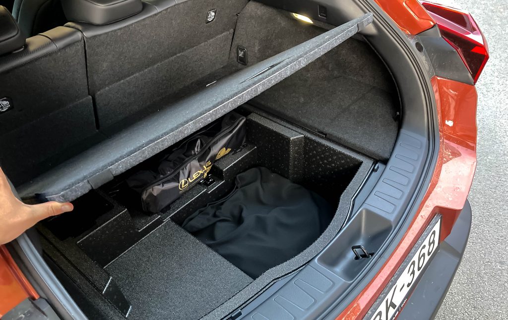 Két ember, négy napra, belföldi programra, túl sok csomaggal nem készül, így nem okozott problémát a mérethez képest szokatlanul kicsi, mindössze 320 literes csomagtartó. A saját autóm egy roadster, annak 250 literes a csomagtartója (optimalizált igényekkel akár egy háromhetes roadtripre is alkalmas), de kétszemélyes. Négy személynél, komolyabb utazási tervek esetében szükség lehet egy tetőbokszra, az biztos. De azért ritkák azok a pillanatok, amikor egy autó tele van pakolva, mert a négytagú család nekifut a horvát nyaralásnak. Évente két-három ilyen alkalom lehet, amikor tényleg minden köbcenti számít, de olyankor négy személy az UX jól látható falaiba fog ütközni. Kettőnek bőven elég, pláne lehajtott ülésekkel. Ennyi hely van benne: