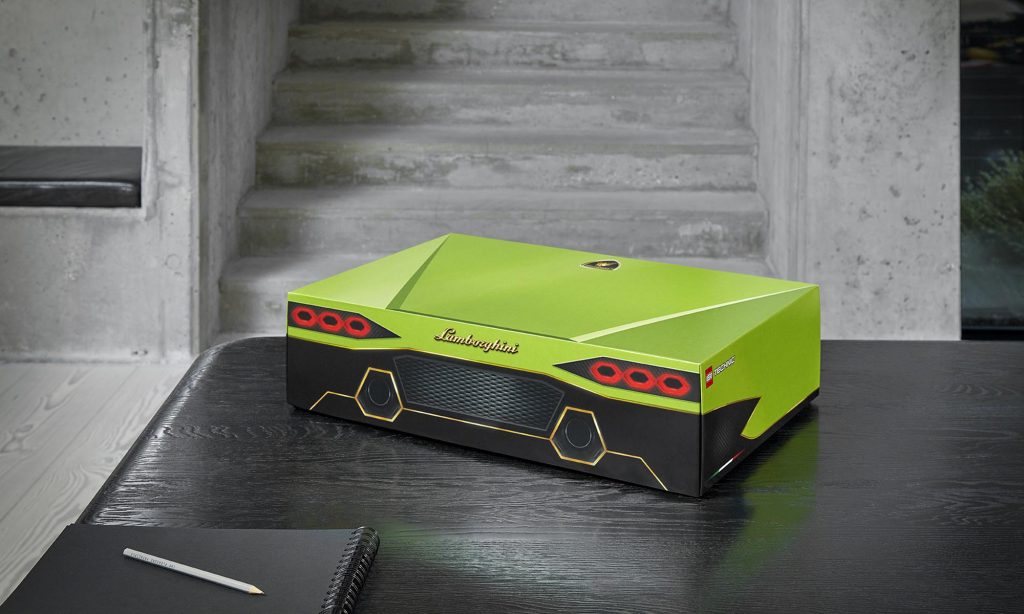 A csomagtérfedelét felnyitva egy méretre szabott bőröndöt találsz, és egy kódot, amivel a Lego weboldalán egyedi tartalmat érhetnek el a kocka-Lamborghini-tulajdonosok.