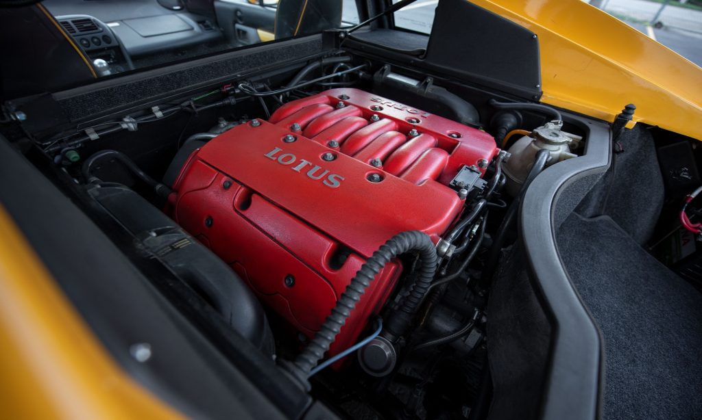 Kabinja mögé a Lotus saját fejlesztésű, 90 fokos hengerszögű 3,5 literes V8-as motorja került, mely 350 lóerővel viszi a kevesebb mint 1,4 tonnás sportautót. Követve a Colin Chapman-i elveket, valóban egy könnyű építésű és remek vezethetőségű autó.