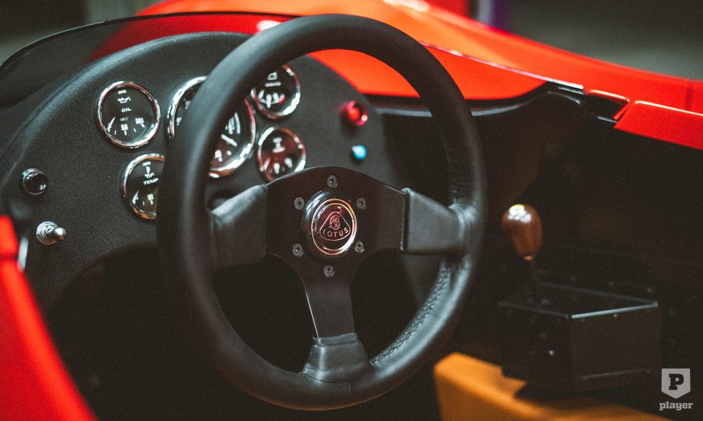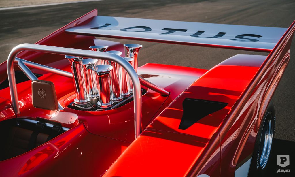 A piros, fehér és arany színkombináció egyértelműen a korszak Lotus versenyautóit idézi,