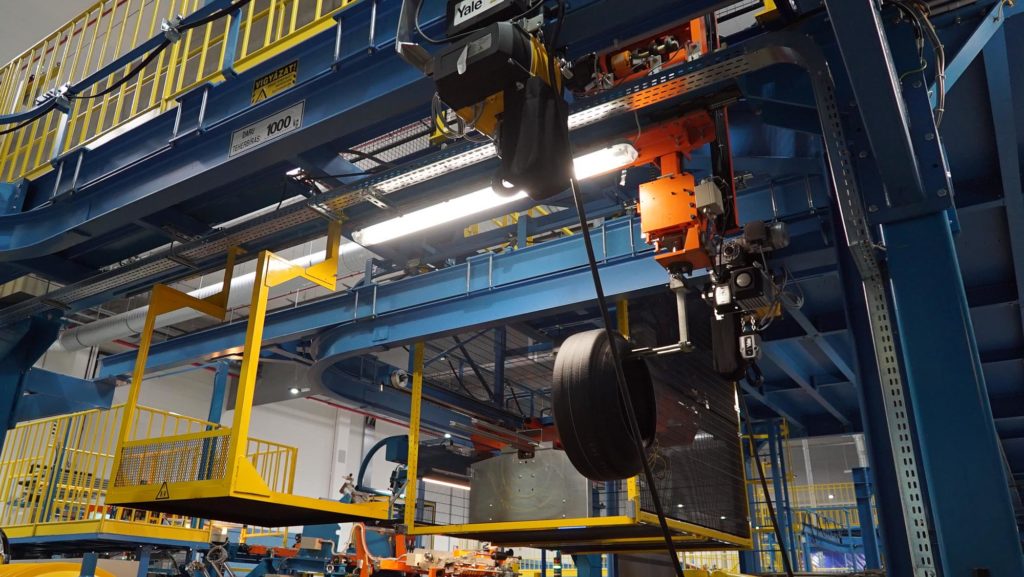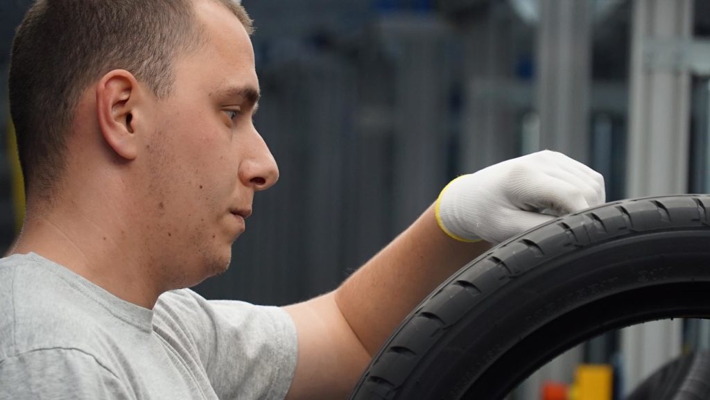 A kész gumik utána látványos görgős futószalagokon utaznak, hogy ellenőrizzenek minden egyes példányt.