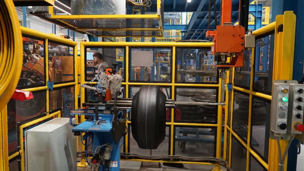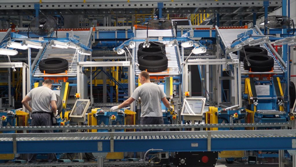 Feltűnhetett, hogy az elkészült abroncsok számához képest elég kevesen dolgoznak itt, és ez a gyártócsarnokba lépve is azonnal látszik. Az üzem két része kétféle technológiával működik, és egyik jobban automatizált, mint a másik. Jóformán mindent gépek végeznek, kivéve egy fontos műveletet, amiről később lesz szó.