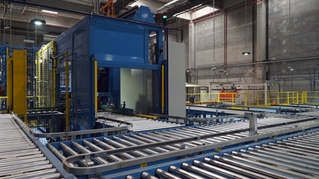Innentől ismét a gépeké a szó, az ellenőrzött abroncsokat robotkarok pakolják a raklapokra, ezeket pedig egy óriási raktárban tárolják, ahol háznyi méretben várakoznak a gumik.