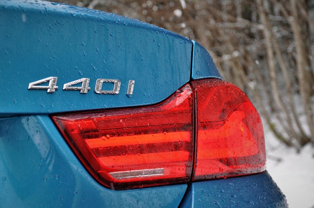Az eső még mindig esett, úgyhogy néha rosszalkodtunk, és kikapcsolt menetstabilizálóval fordultunk ki egy kereszteződésből, a 440i Coupé pedig úgy teszi ki a hátát, ahogyan a nagykönyvben meg van írva.