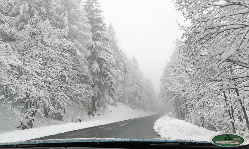 Szóval untuk az esőt, úgyhogy kaptunk még egy kis havat. Pontosabban nagyon sokat. Berchtesgaden felé, ahogyan emelkedett az út, olyan sűrűn havazott, hogy ilyen karácsonyról álmodik minden kisgyerek.