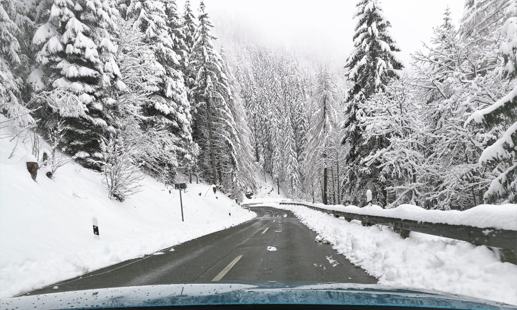 Pedig még nem is ez volt a legjobb. Az úti cél a Rossfeldstrasse volt, egy fizetős panorámaút a német-osztrák határ közelében, ahol magas fenyők között autózhatunk a 2500 méternél magasabb alpesi hegyek között. A térdig érő hóban az utat tökéletesen letakarították, és még annyi forgalom sem volt, mint az előbb, úgyhogy kedvünkre nyomhattuk a gázt. Ez maga a beteljesült álom.