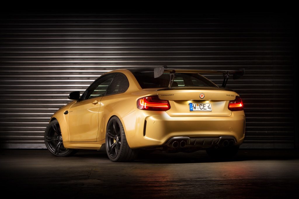 De itt a német Manhart Performance, akik mindent kihoztak az M2-ből, amit csak lehetett. Az MH2 630 névre keresztelt autóban nem véletlenül van ott az a szám: a hathengeres motort a turbó és a motorvezérlés átalakításával és új rozsdamentes kipufogórendszerrel 630 lóerőre izmosították, a maximum nyomaték 750 Nm-re nőtt. Az M2 ezzel még gyorsabbá vált: 3,6 másodperc alatt gyorsul nulláról százra.