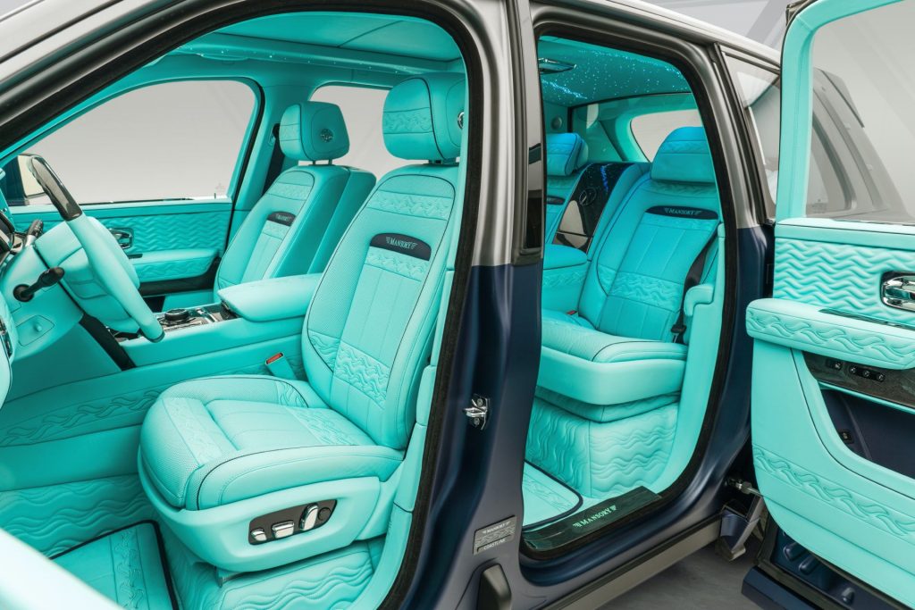 Most viszont végre kiélték magukat. A végül lefújt genfi autószalonra szánt Cullinan Coastline külseje elsőre is ronda lett, ahhoz nem nagyon nyúltak, belül azonban bőven volt még játéktér: választottak egy olyan irritáló türkiz árnyalatot, amelyből egy tenyérnyi is sok lenne, majd az ablakokon kívül gyakorlatilag mindent bevontak vele.