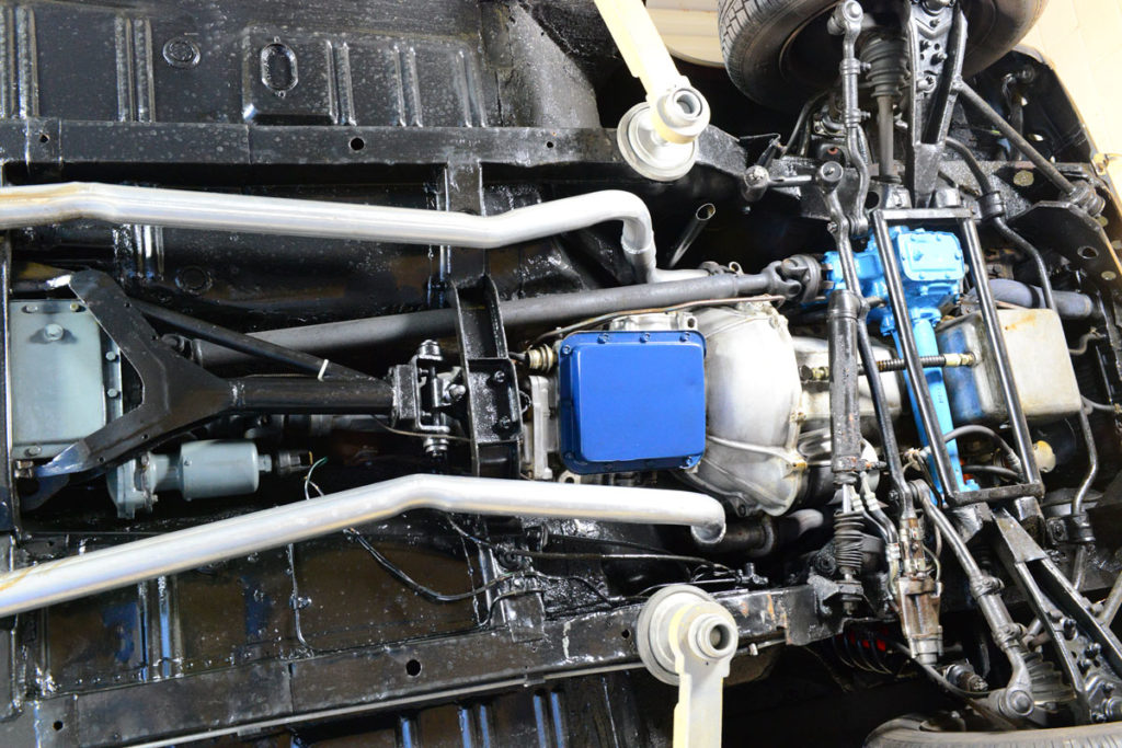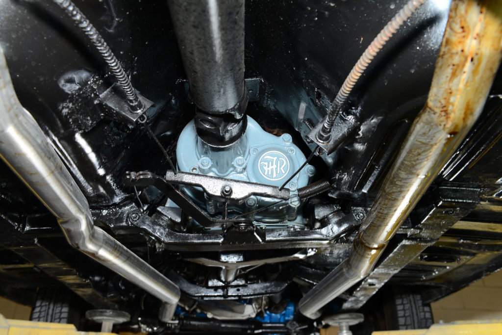 A Fergusonnál pedig a V8-as motorral és automata váltóval szerelt Mustangot is összkerékhajtásúvá alakították. Az állandó négykerékhajtás a nyomaték 63 százalékát továbbította a hátsó kerekek felé, így megőrizhette sportos vezethetőségét a Ford izomautója. Még egy kezdetleges mechanikus blokkolásgátló rendszerrel is felszerelték az autót.