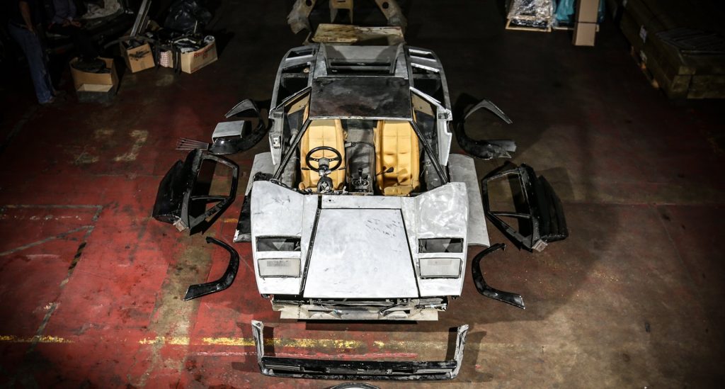 akkor került be egy műhelybe, hogy új kárpitot kapjon, és az eredeti fekete színére fényezzék. Csak a szétszedésig és csiszolásig jutottak, amikor be kellett zárnia a műhelynek, és a Countach is csipkerózsika-álomba merült.