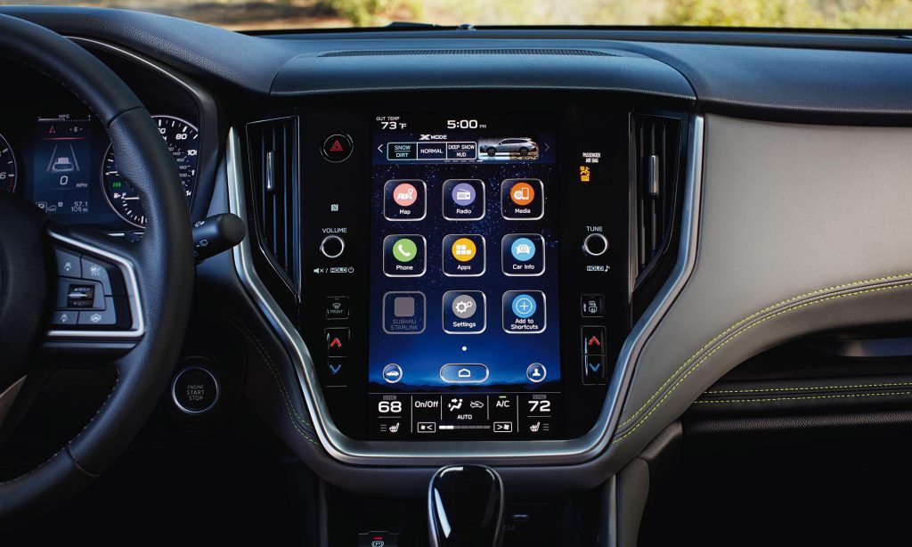 A formája ennél subarusabb nem is lehetne, és mint eddig, az Outback ezúttal is megemelt futóművet kapott, amivel a hasmagassága 22 centiméteresre nőtt. A belső tér újdonsága pedig az a 11,6 colos, álló formátumú érintőképernyő, amit a Legacy is megkapott.