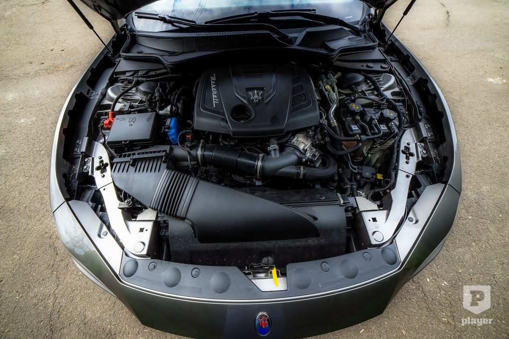 Így viszont van mire fogni a maseratis magasságban durva beavatkozásnak számító hengerszámcsökkenést: bizony, a hibrid már csak négyhengeres, csak kétliteres, viszont 330 lóerős, a nyomatéka 450 Nm.