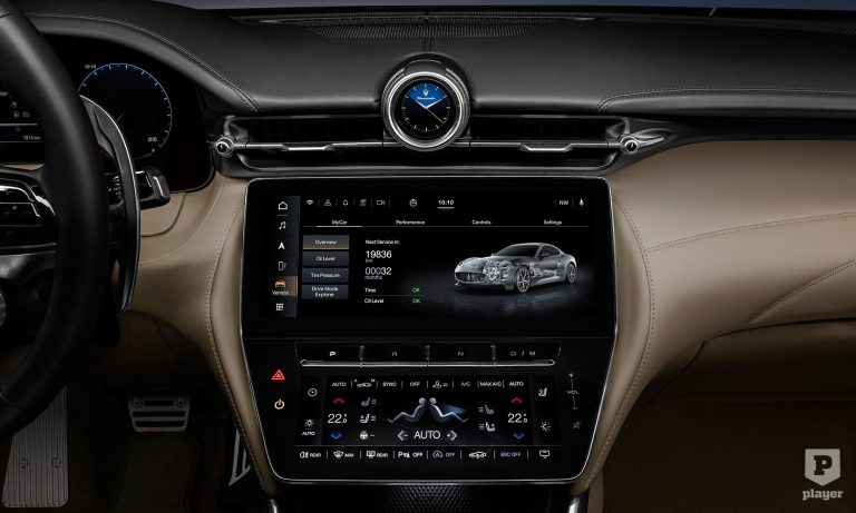 A kormánykerék, rajta a startgombbal és mögötte a fém váltófülekkel, a színes képernyős műszeregység, valamint a középső képernyő alatti plusz érintőkijelző is a Maserati szabadidő-autójából származik, akárcsak a nyomógombos kilincsek és a középen lévő, változtatható kijelzőjű óra.