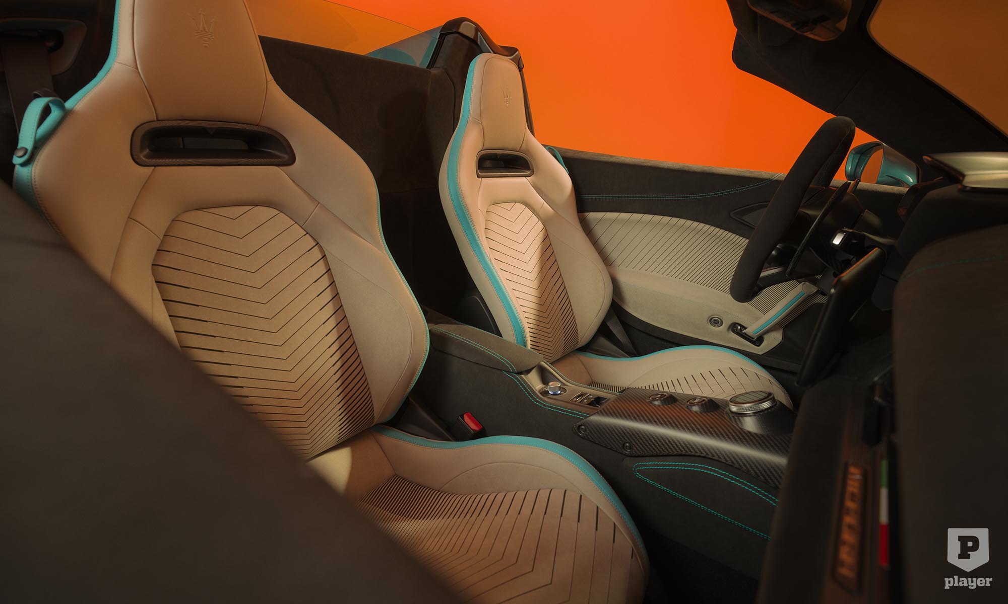 A Maseratinál egy különleges színnel is készültek a bemutatóra, ez az AI Aqua Rainbow, aminek az AI-hoz kevesebb, a szivárványhoz annál több köze van. Olyan háromrétegű, színváltós kék árnyalat, amelyben ibolya, türkiz és arany pigmentek is találhatók. A fényt szivárványszínekre bontó prizma ihlette, a kupéváltozaton matt, a roadsteren pedig fényes változatban láthatjuk. A Devil Orange, a Verde Royale és a Night Interaction is új árnyalatok.