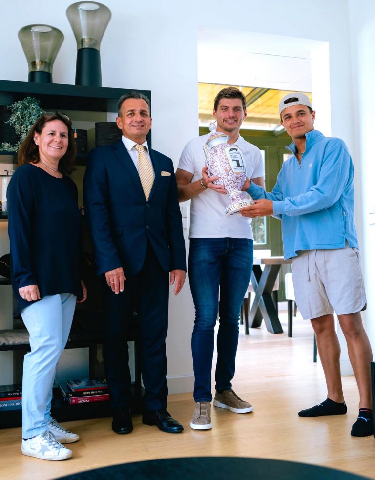 A Herendi betartotta az ígéretét, és pótolta Max Verstappen porcelántrófeáját, amit az idei Magyar Nagydíj győzelméért kapott, de már a dobogón összetört. Lando Norris is ott volt az átadáson.