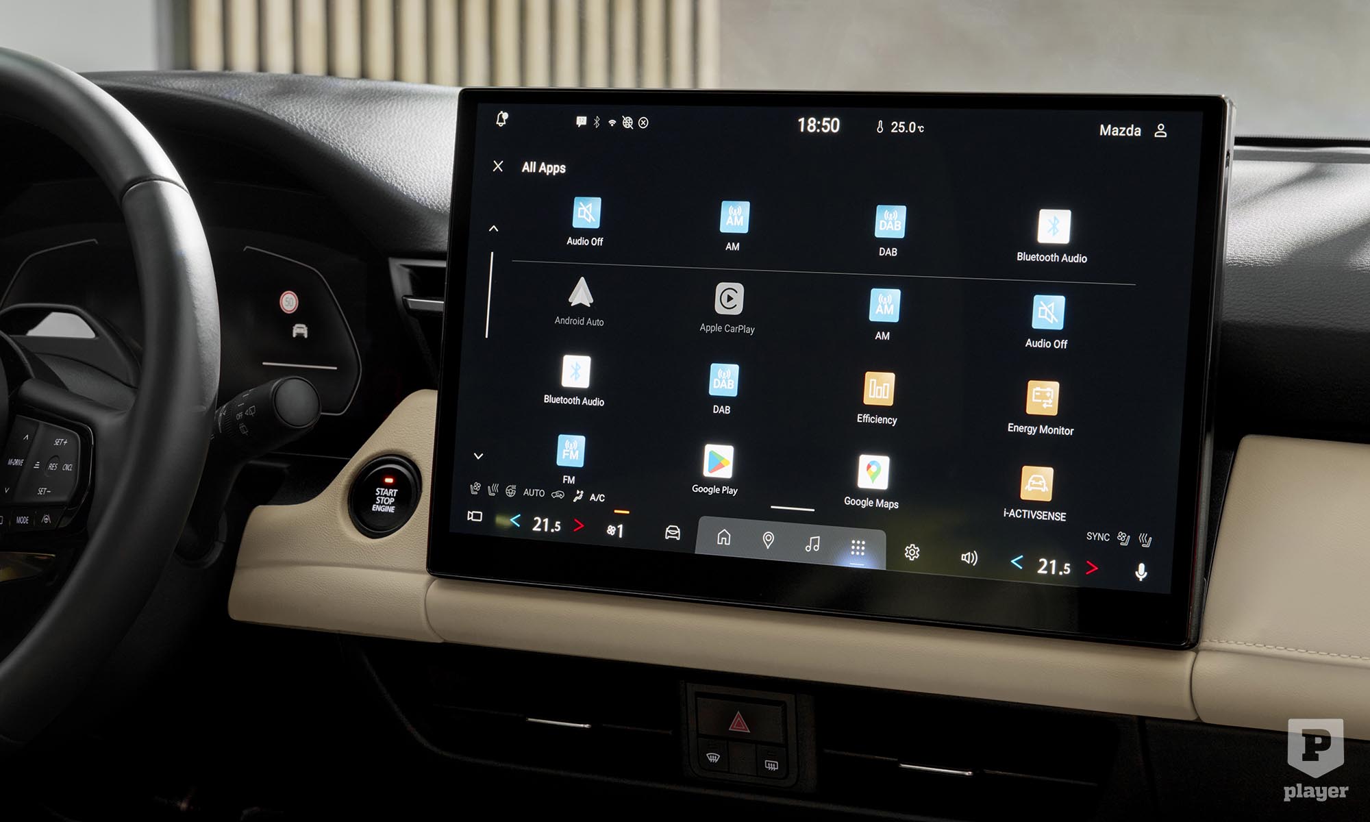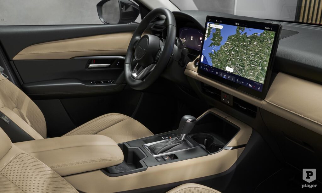 míg hátul a széles lámpák a CX-60-ast idézik fel. Berendezése letisztultabb, mint valaha, csak a 10,25 colos műszeregységet és a felszereltségtől függően 12,9 vagy 15,9 colos érintőképernyőt találjuk, utóbbin androidos az új fedélzeti rendszer, még a mesterséges intelligenciával működő Google Gemini asszisztenst is elérhetjük rajta.