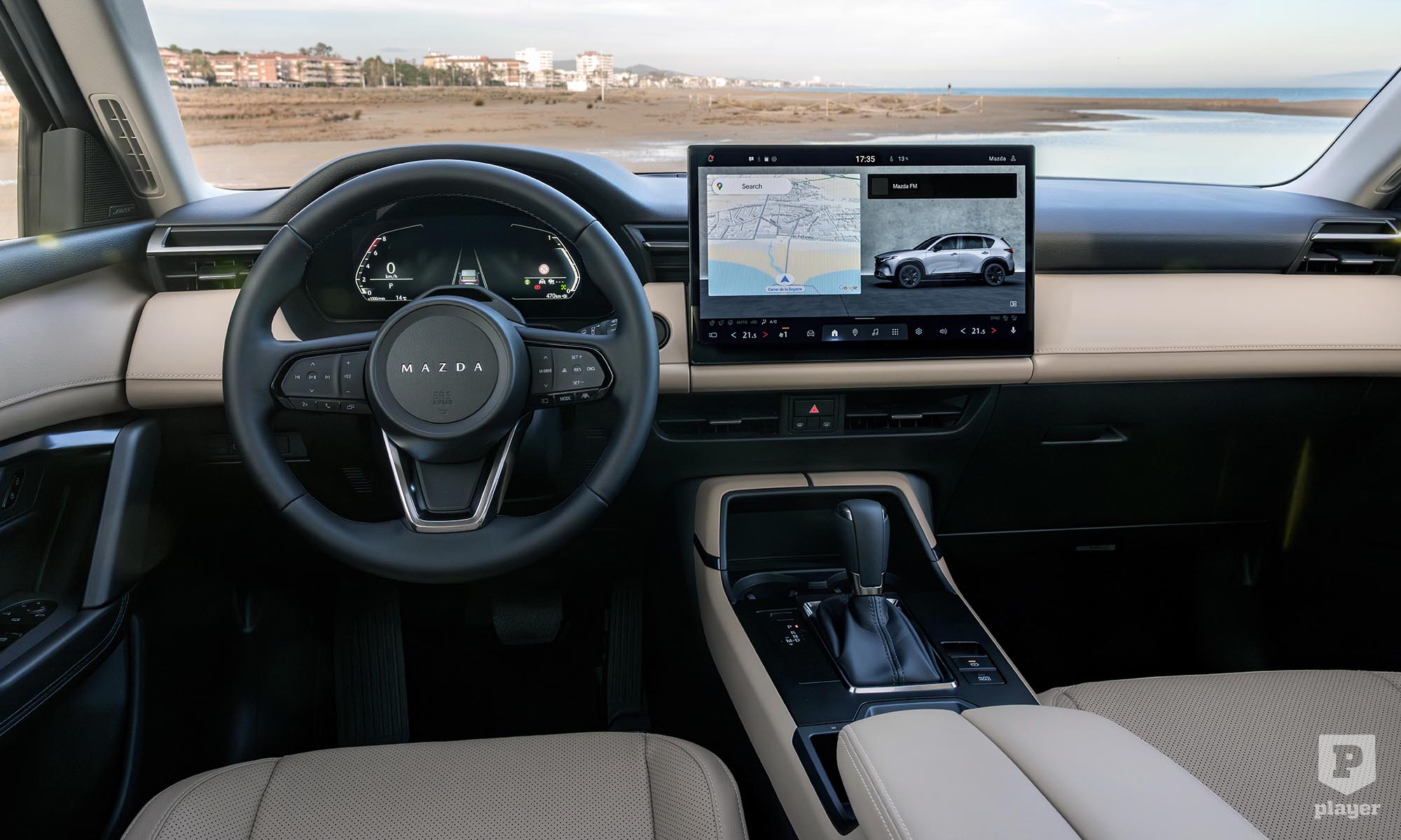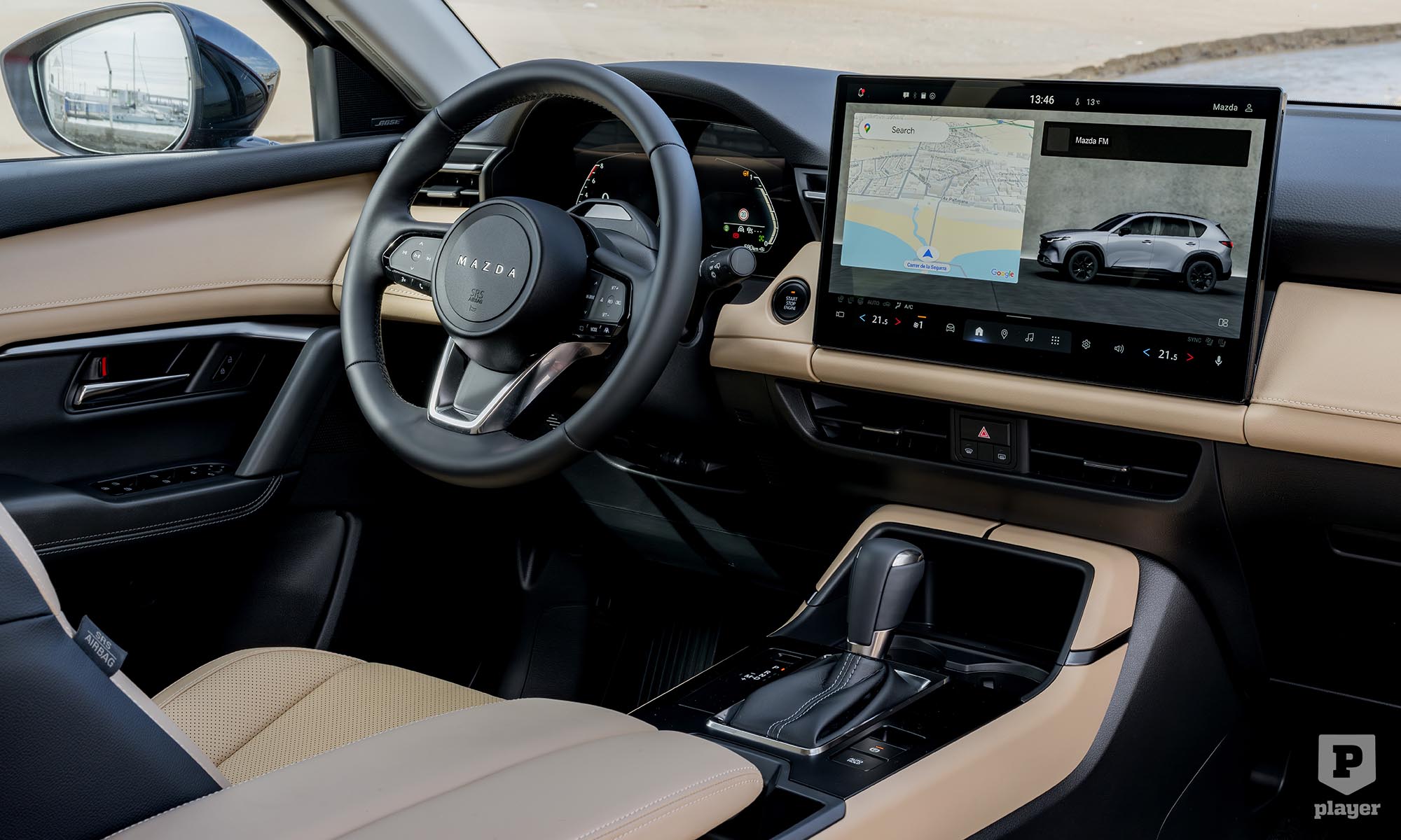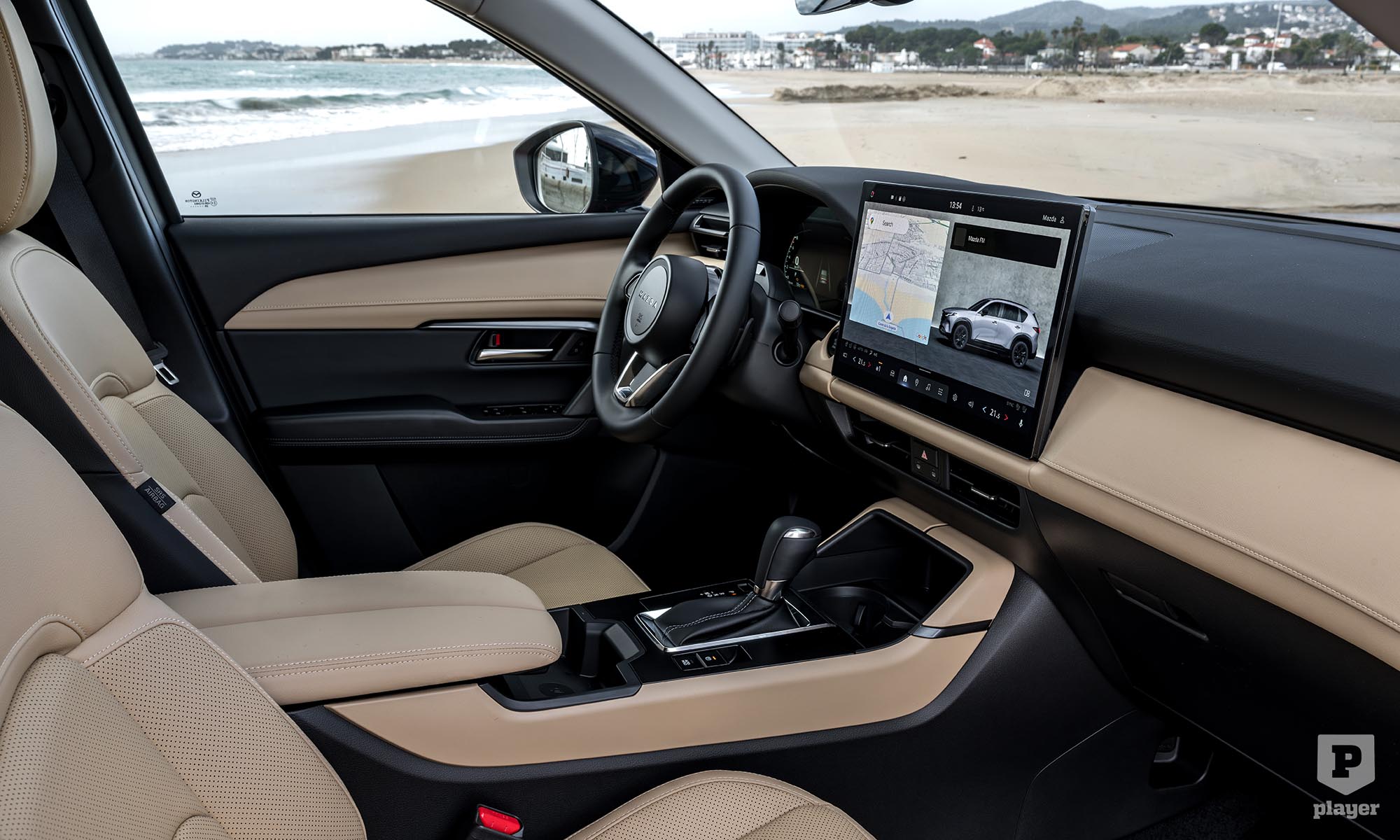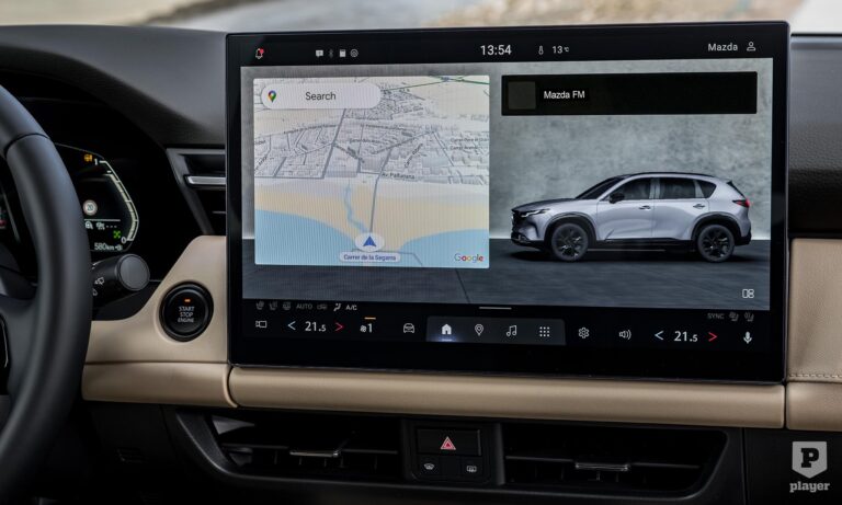 Most lépett be igazán a CX-5 a digitális korszakba. A fűtésvezérlés és több funkció érintőképernyőről megy, mögötte Google-alapú rendszer fut, Apple CarPlay és Android Auto támogatással, távoli frissítéssel.