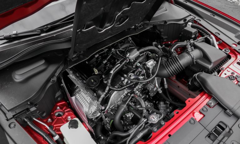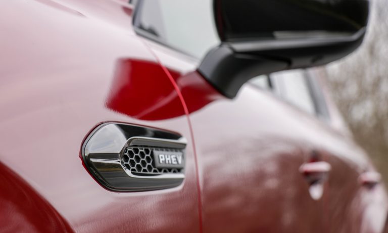 PHEV felirat díszeleg a sárvédő kopoltyúján, ami annyit tesz, hogy a horizontig érő motorháztető alatt egy 2,5 literes, négyhengeres szívó benzinmotor van, mely 192 lóerőt ad le 6000-es fordulaton és 261 Nm csúcsnyomatéka van 4000-nél. Ehhez jön még a konnektorról tölthető hibrid hajtás, mely egy 175 kg súlyú, 17,8 kWh-s akkucsomagból és a váltó előtt lévő 175 lóerős villanymotorból áll.