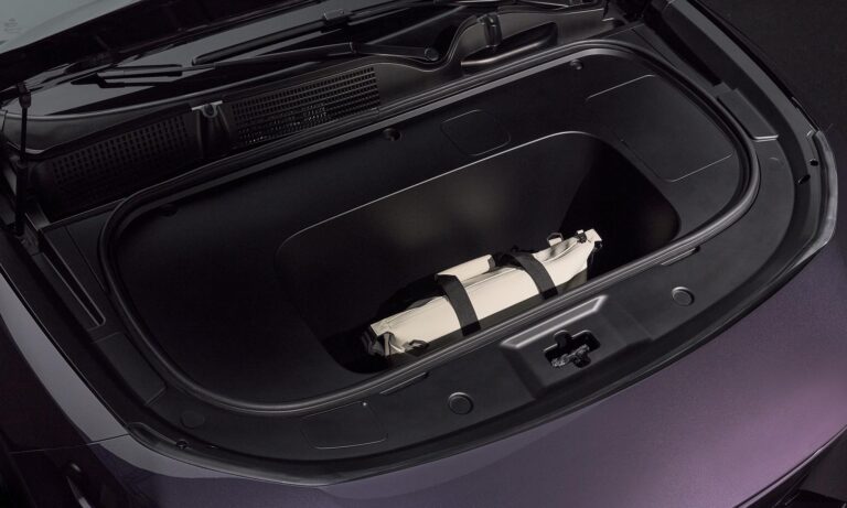 a hátsó üléseken bőséges a tér, és külön vezérlőpanelt is kapnak az itt ülők. Cserébe a csomagtér mérete csak átlagos, 468 literes, a hátsó ülések ledöntésével 1434 literesre bővíthető, és az autó orrában is van egy 80 literes rekesz, ahová el lehet tenni a töltőkábeleket. Széria az egy négyzetméteres panorámatető, elhúzható árnyékolóval.
