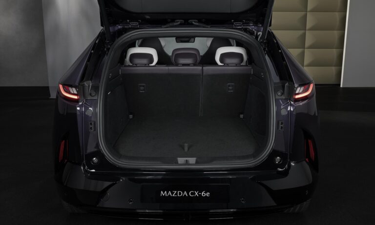 Azt már a 2,9 méteres tengelytávja sejteti, hogy tágas lesz az autó, és a CX-6e ezen a téren megfelel a várakozásoknak,