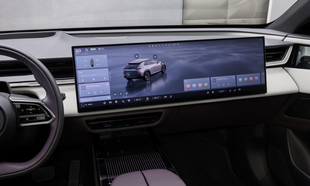 A letisztult stílusú műszerfal érdekessége, hogy a kormánykerék mögött nincs hagyományos értelemben vett műszeregység, az információkat a széria head-up display vetíti a szélvédőre. A középkonzolon pedig egy hatalmas, 26 colos, szélesvásznú érintőképernyő kapott helyet, amit az elöl ülő utas is tud használni.