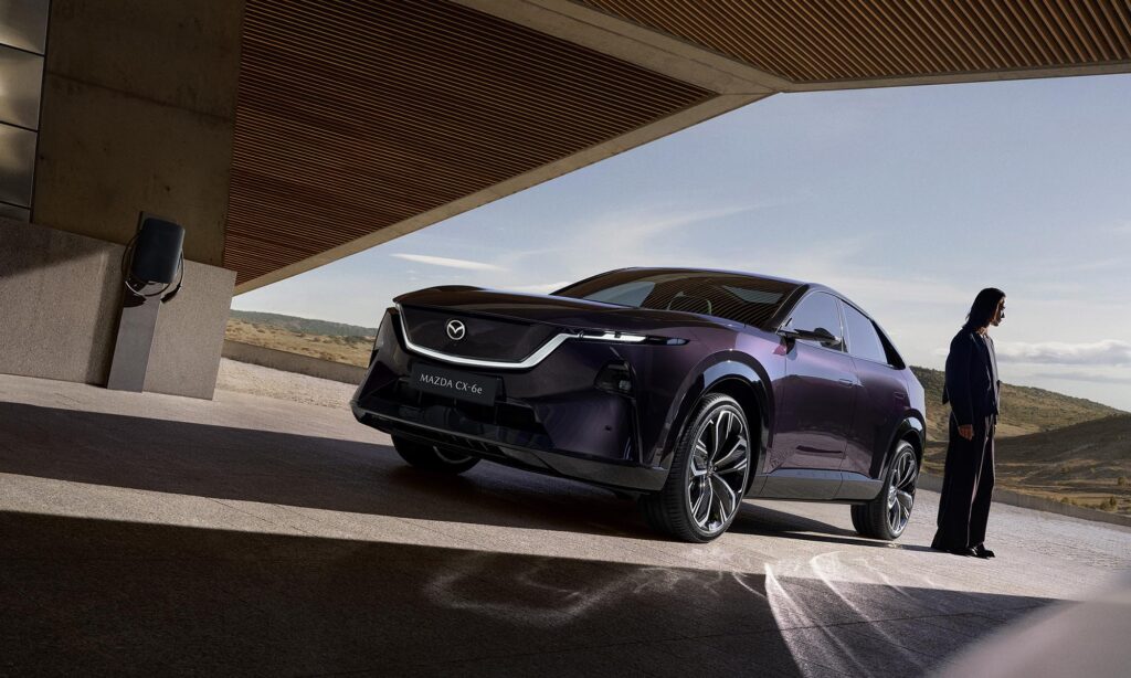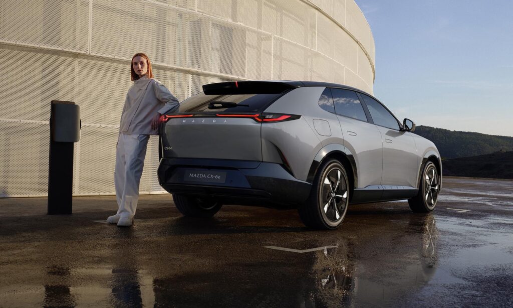 A Mazda első elektromos szabadidő-autója az MX-30 volt, de az első, ami az európai vevők szélesebb körének lehet érdekes, a most bemutatott CX-6e, ami a Mazda6e technikáját önti még praktikusabb formába.