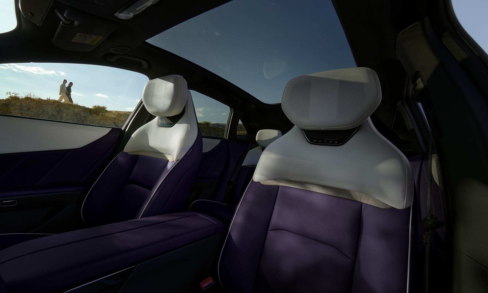 Nem hiányoznak a különleges megoldások a CX-6e utasteréből. Az első fejtámaszokba például hangszórók kerültek, és ezen a vezető anélkül fogadhat telefonhívást vagy hallgathat zenét, hogy zavarná az utasokat az autó 1280 wattos hangrendszerével. A csúcsmodell, a Takumi Plus pedig