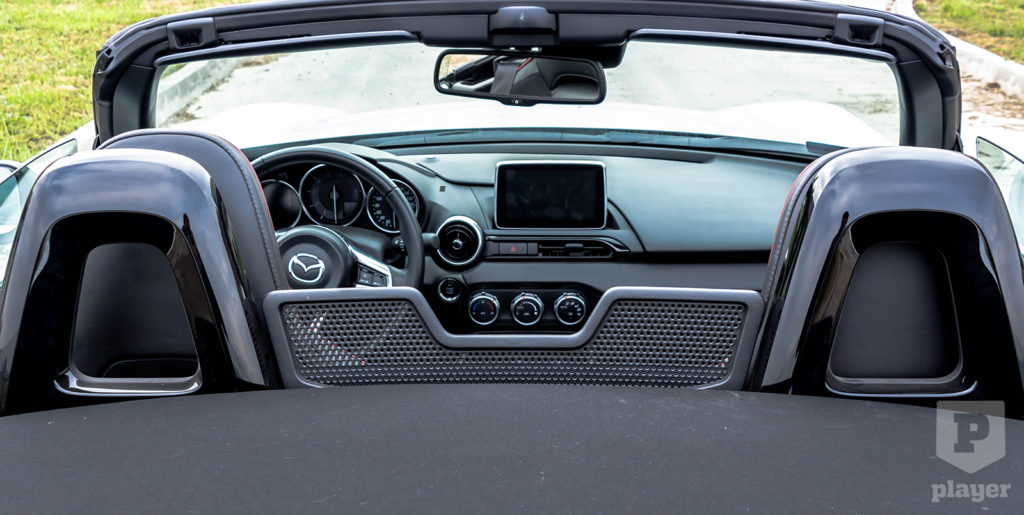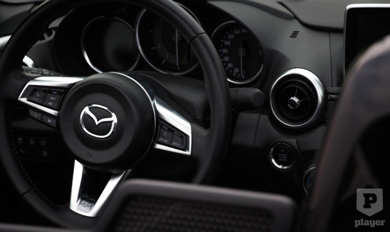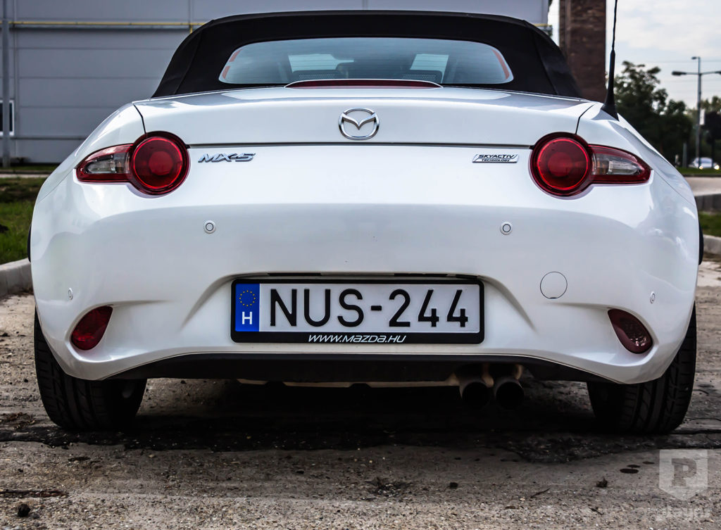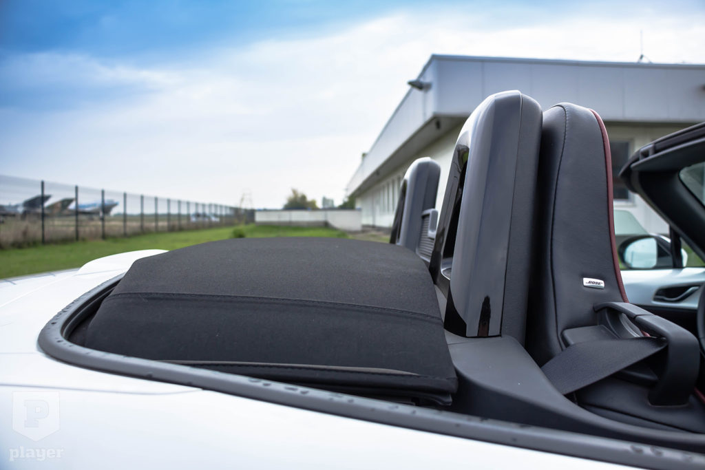 Sajnos itt a legnehezebb együttműködni az MX-5-tel. Nagyon is számít, mennyire vagyunk magasak, ugyanis 175 cm magasság felett egyszerűen nem kényelmes az autó. Ha fent van a tető, akkor beleér a fejünk, ha pedig le van húzva, akkor kapja a homlokunk keményen a szelet.