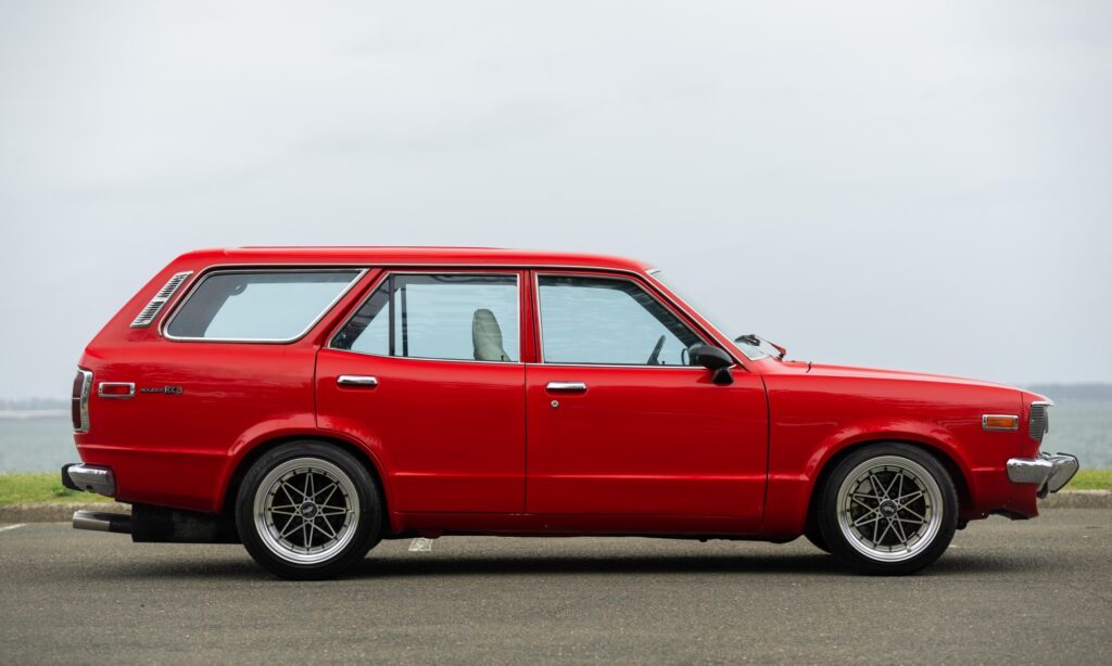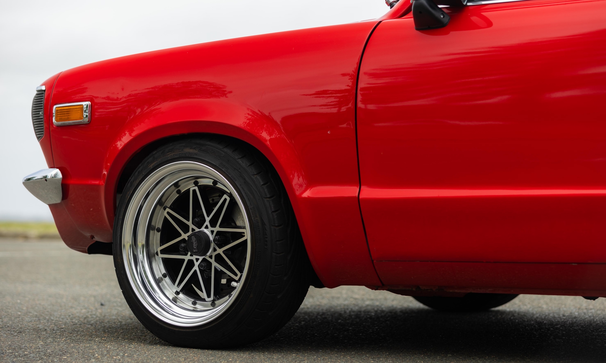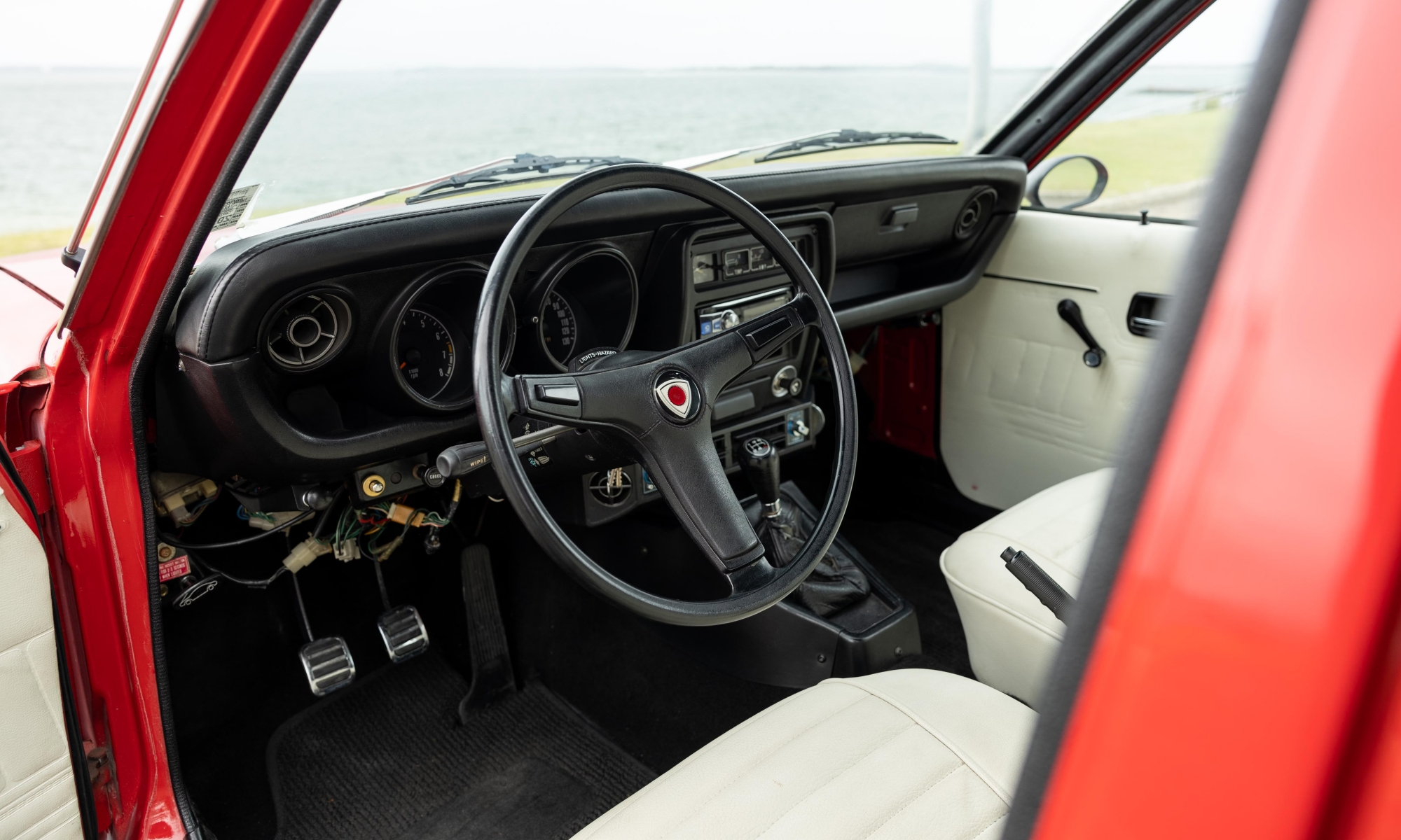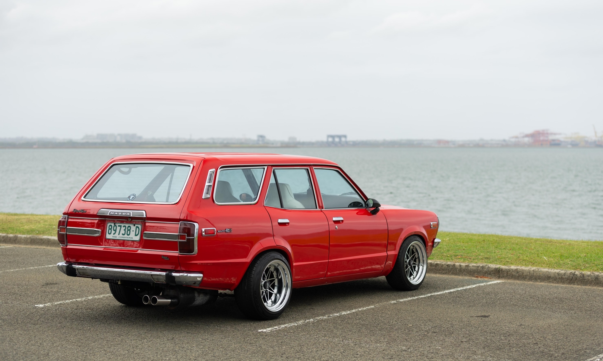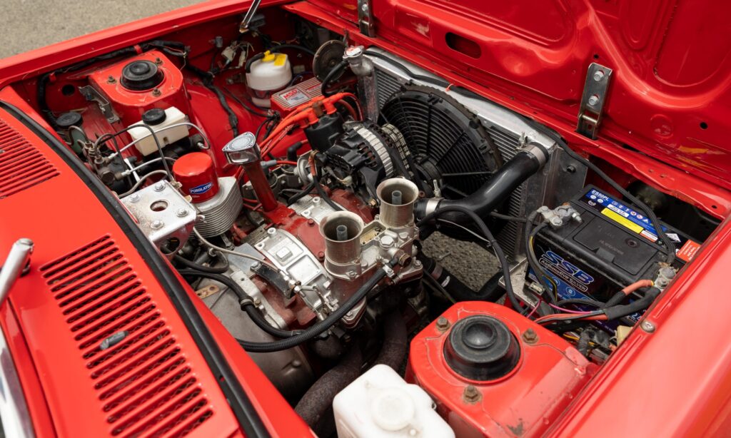 Okkal terjedt el a Wankel-motor Japánban, hiszen a bolygódugattyús autók lökettérfogata könnyedén 1,5 liter alatt maradt, így a helyi szabályozások szerint a kedvezőbb adózási sávba esett. Ebben az RX-3-asban eredetileg már az 1,2 literes változat van, ami 130 lóerős és 156 Nm a csúcsnyomatéka, ezzel pedig nagyjából 11 másodperc alatt van álló helyzetből százon a piros kombi. A motortérben viszont látványosak a Weber karburátorok, szóval valószínűleg a korszaknak megfelelő tuninggal lelkesebb az RX-3.