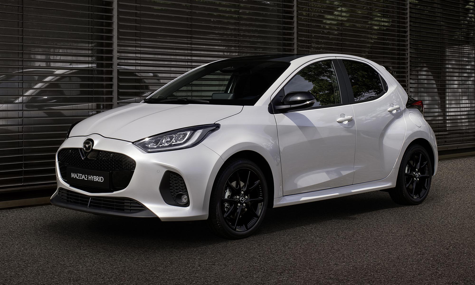 Pirosban a jelenlegi Mazda2, fehérben a Toyotától átvett Mazda2 Hybrid