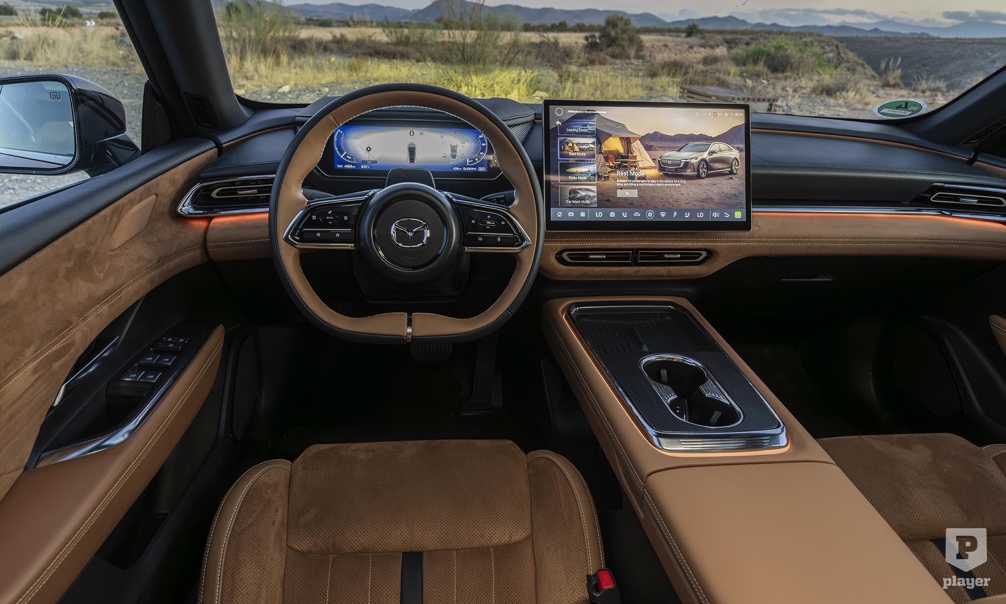 Belül a Mazda6e kellemesebb hely, mint gondolnád, letisztult dizájn és igényes anyagok fogadnak,