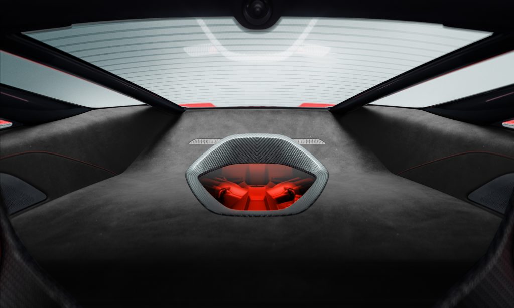 M840T kódú, 4,0 literes, biturbó V8-as motorja az ülések mögötti 210 literes csomagtér padlójába integrált üvegen keresztül is megcsodálható.