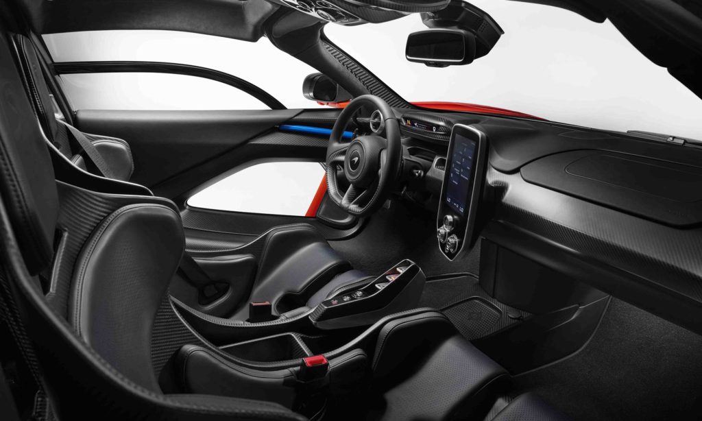 Belül a 720S-ből ismerős a behajtható műszeregység, de a startgomb például a tetőre került. A minimalista berendezés ellenére a felszereltség része az érintőképernyős infotainment rendszer és a tolatókamera, és az üléseket is a vevőhöz igazítják majd. A kétüléses utastérben éppen csak két bukósisaknak és overallnak jut hely.