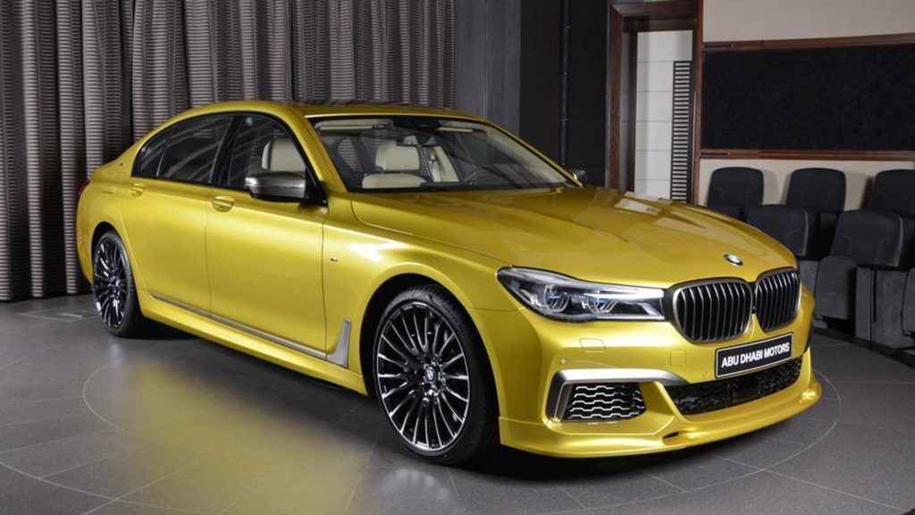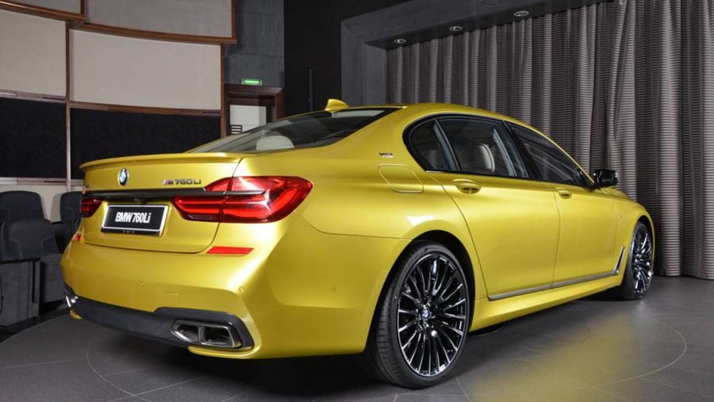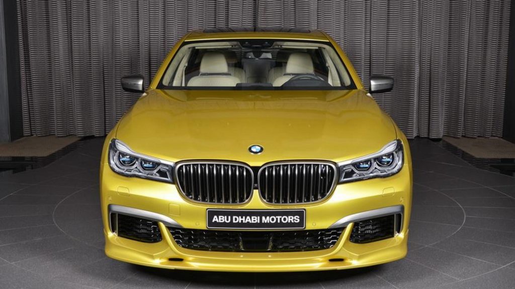 Megszokhattad már, hogy Abu-Dhabiban szeretik az extravagáns autókat, és ez a 7-es sorozatú BMW sem kivétel ez alól. A kínálat legdrágább tagját, a 610 lóerős V12-essel hajtott M760Li-t ragyogó aranysárgában rendelték meg, és még így is jól mutat.