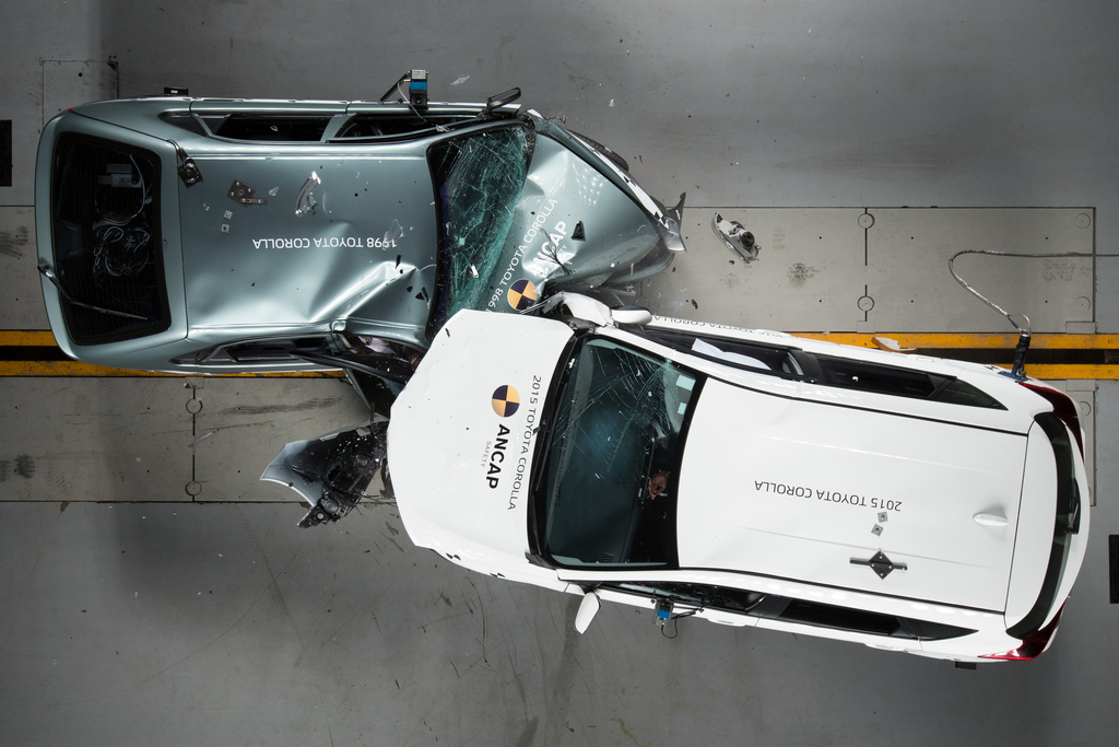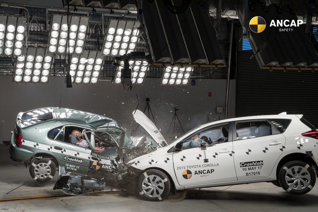 A törésteszteket végző ausztrál ANCAP egy 1998-as Toyota Corollát hasonlított össze egy újjal (amit nálunk már Auris néven forgalmaznak), és az eredmény sokkoló. Mind a két autó 64 km/órás sebességgel közelített a másik felé, és félig átfedésben ütköztek össze, de amíg az új Toyota utascellája szinte sértetlen maradt, addig a régi Corolla rendesen összegyűrődött.