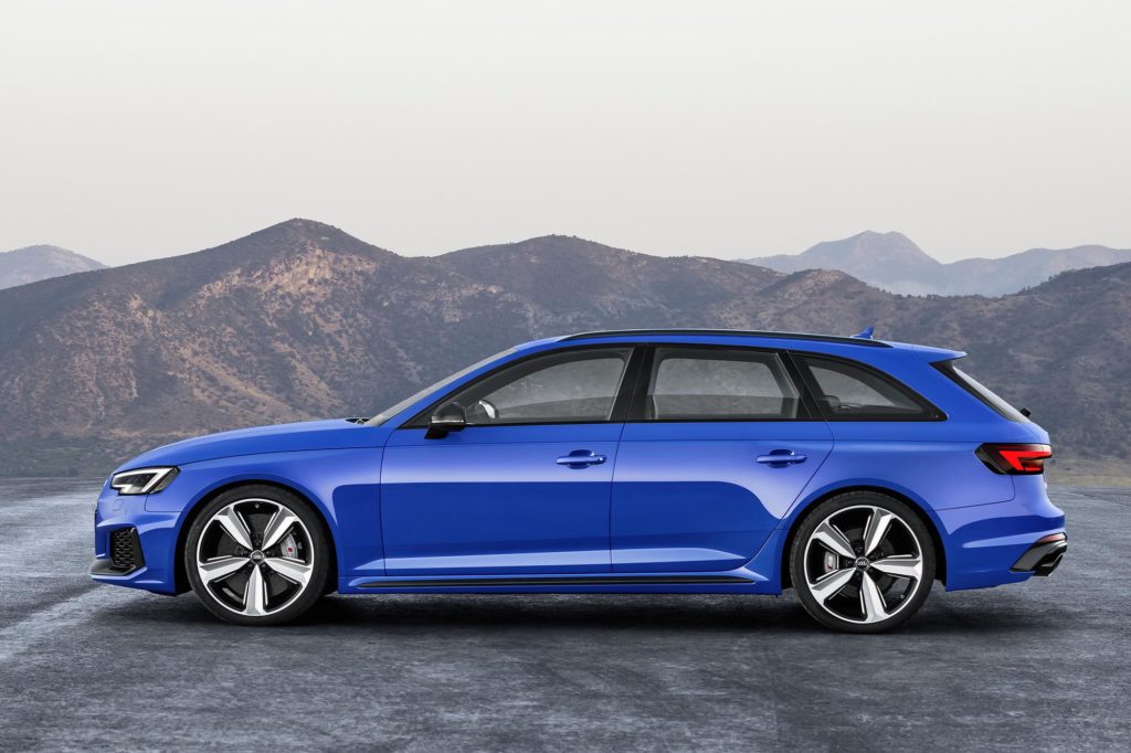 Most pedig itt a legújabb A4 sportváltozata, természetesen kombiként, és ugyanabban a Nogaro kék színben, amiben a legelső RS4 Avant is pompázott 1999-ben. A 19 colos kerekeken gördülő kombi sárvédőit három centivel kiszélesítették, a futóművet 7 milliméterrel leültették, de a nagy légbeömlők, a diffúzor és az RS-re jellemző ovális kipufogóvégek is árulkodók.