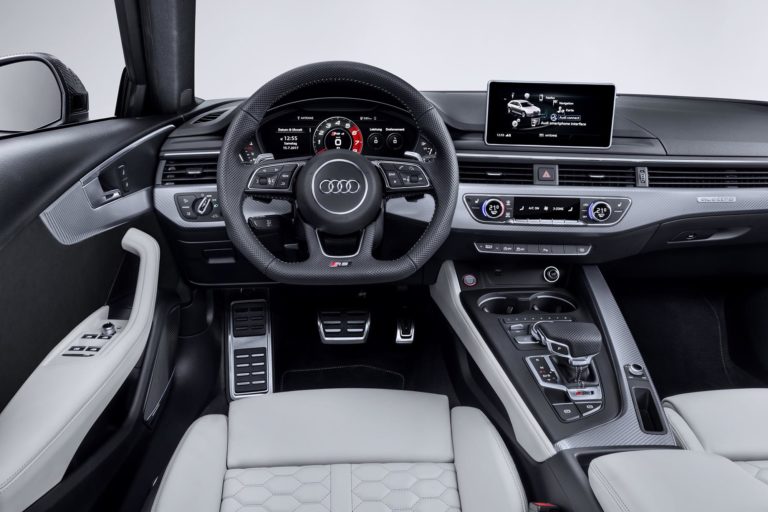 Az új RS4 Avant ugyanazt a 2,9 literes biturbó V6-ost kapta, mint az RS5 Coupé, nyolcfokozatú automatával, és a 450 lóerő és 600 Nm a quattro hajtással már elég sok mindenre képes.