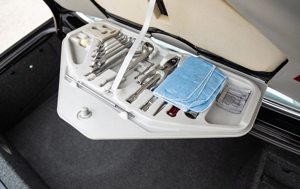 A gyári kazettás rádiósmagnó és a hiánytalan szerszámkészlet is megvan ebben az M6-ban,