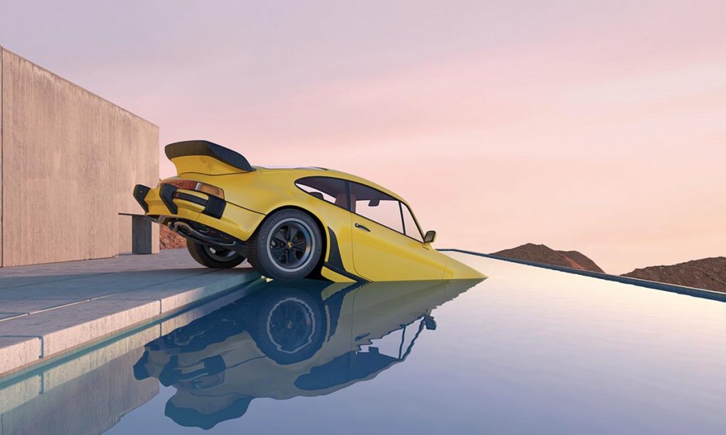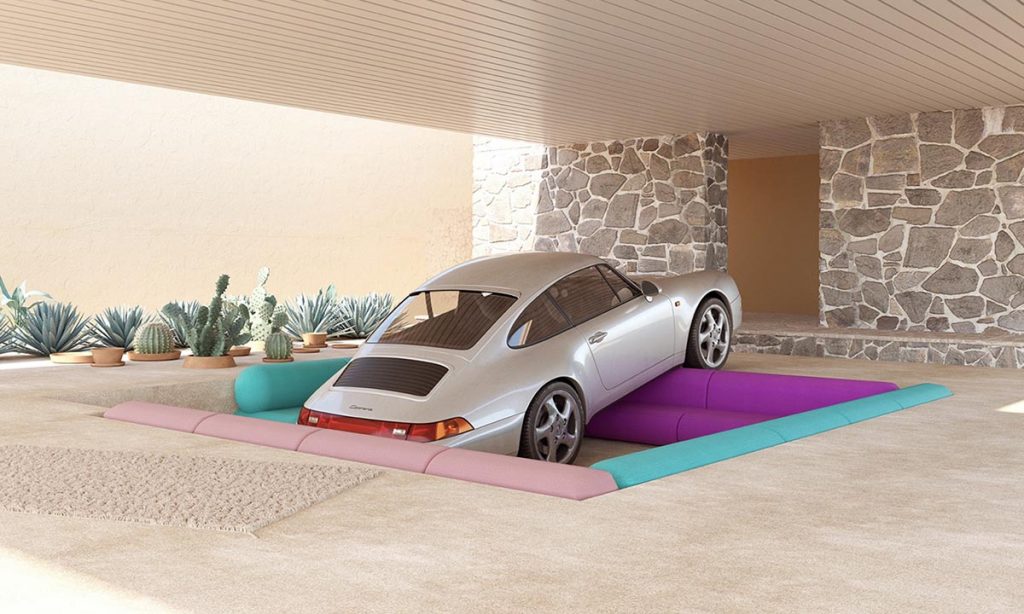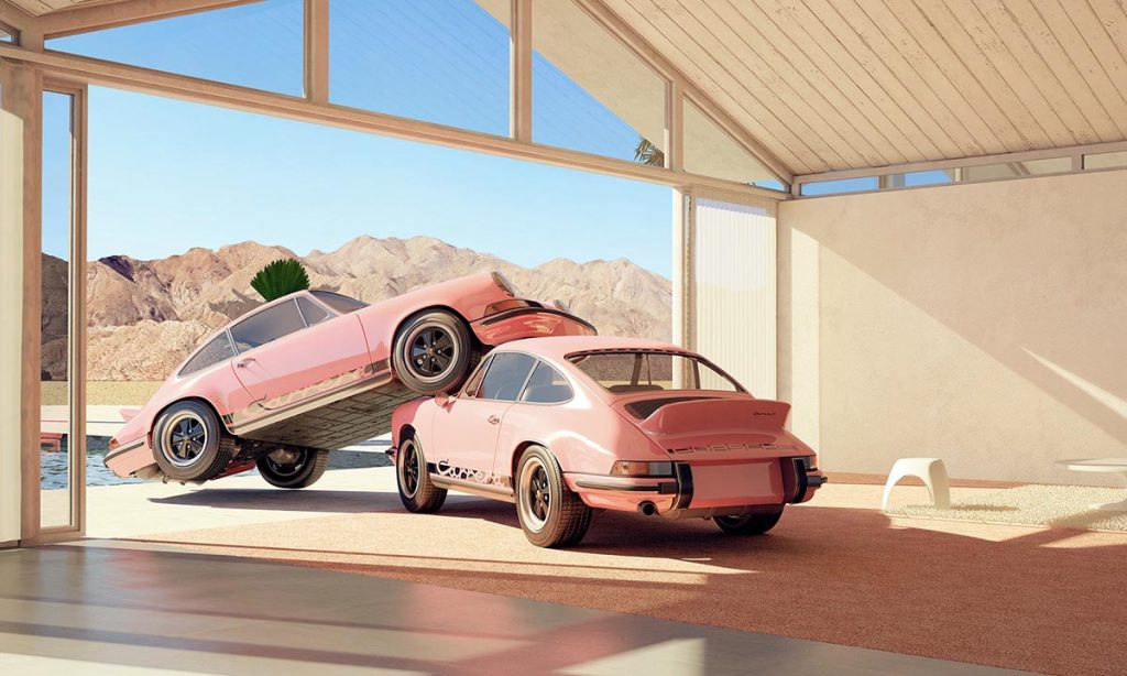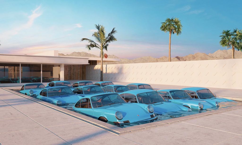 A digitális művész, aki az Apple, a British Airways és a Nike számára is alkotott már, ezúttal klasszikus Porschéket helyezett el szokatlan környezetben, amihez Palm Springs, a sivatag és a pálmafás medencék adták az inspirációt.