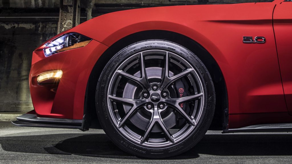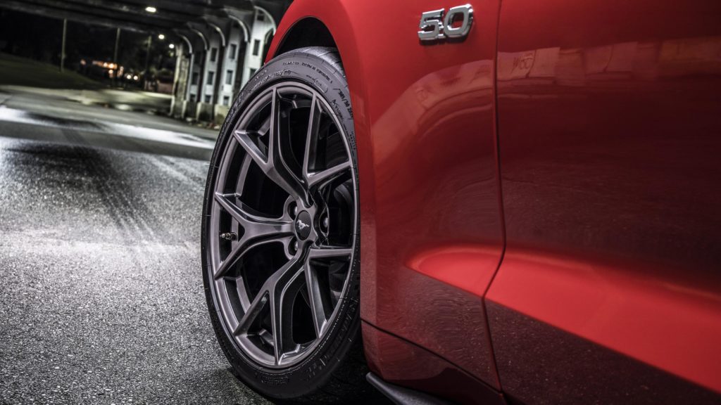 A Mustang pedig szélesebb 19 colos kerekeket is kap, amire 305/30 méretű Michelin Pilot Sport Cup 2 abroncsok kerülnek. Pontosan olyan gumik, mint amiket a Chevrolet Corvette Z06 vagy a Mercedes-AMG GT R is megkap. A Ford izomautója ezekkel nemcsak szédületesen néz ki, de még jobban tapad a kanyarokban.