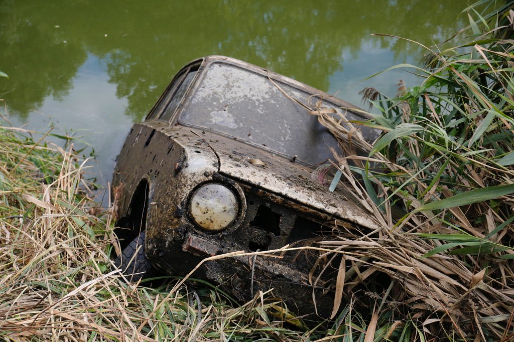 Egy zalaegerszegi speciális mentőegység csörlővel vontatta a folyópartra a kocsit, amelyet az MTI helyszíni információi szerint vélhetően egy az 1990-es évek vége felé lopták el.