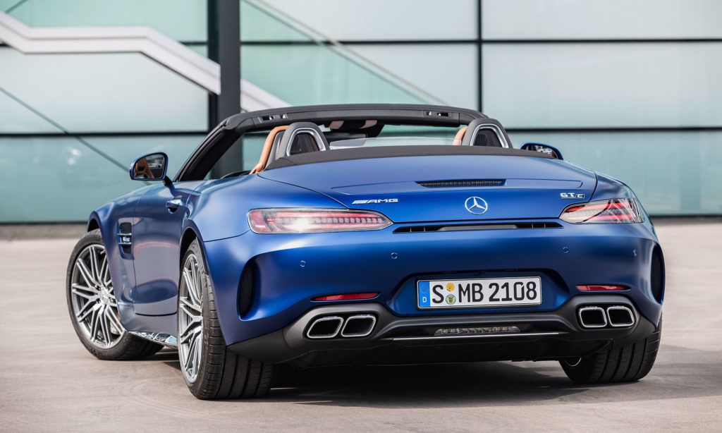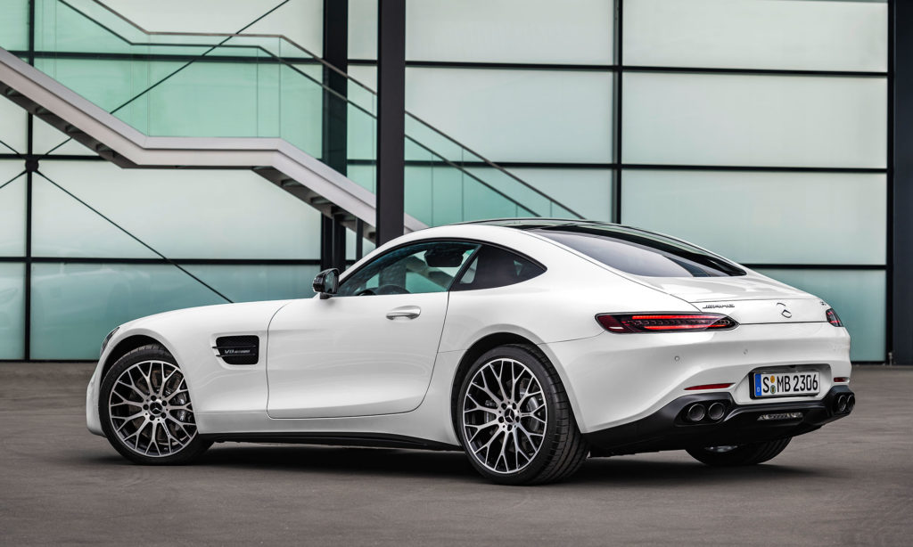 A formáját a négyajtós AMG GT inspirálta, ahhoz hasonlítanak az új fényszórók, a hátsó lökhárító és a kipufogók kialakítása is. A sima AMG GT kétszer két kerek véget kap, a GT C kipufogócsövei szögletesek, a GT R-nek pedig középre helyezték el.