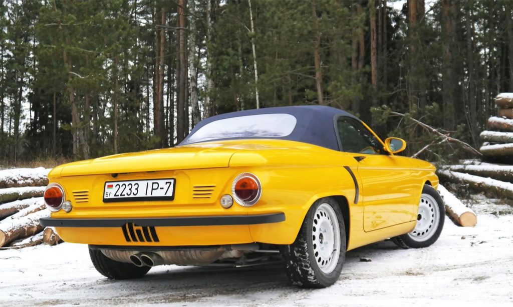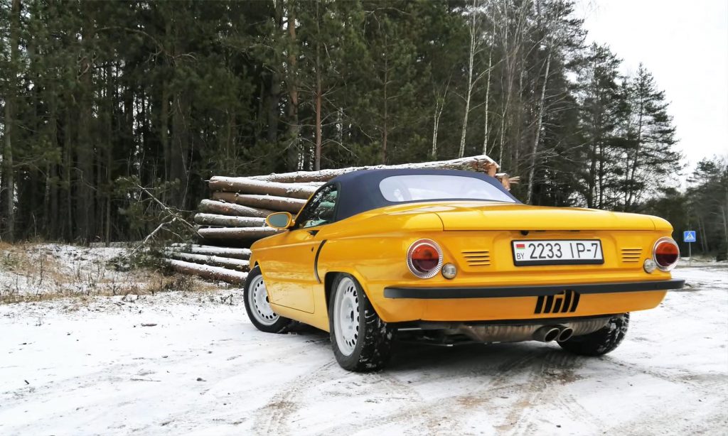 Szinte hihető, hogy a hatvanas évekből került ide ez a stílusos sportkocsi, még a Zaporozsec jellegzetes kopoltyúja is jó helyre, a motorhoz szállítja a levegőt.