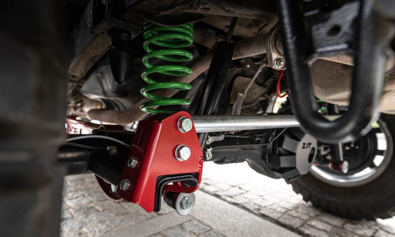 ugyanis kicserélték a rugókat, a lengéscsillapítókat, a futómű további alkatrészeit, továbbá megerősítették a kardántengelyeket és védőburkolatot kapott a differenciálmű is. Mindez azt jelenti, hogy bátran viheted terepezni. Jó ötlet a motorházfedélre tett gumis leszorító is.