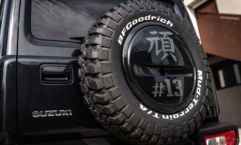 A Suzuki kisterepjárójára pedig tényleg igazak lehetnek ezek a jellemzők, főleg ebben az átépített formában. Az eleve jó kiállású autó futóművét még 10 centivel megemelték, és a kerekekre 235/70 méretű terepabroncsokat tettek, amivel a hasmagassága 31 centiméteresre nőtt.