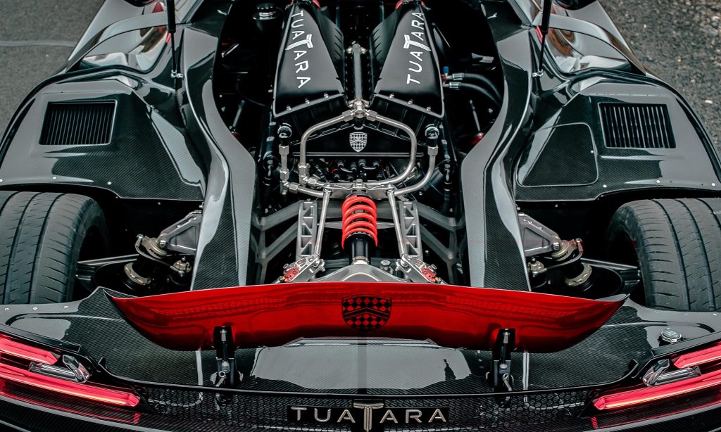 a váltója hétfokozatú robotizált. A szénszálas anyagból készült Tuatara közben alig 1250 kilogrammot nyom, ezért elképesztően mehet.