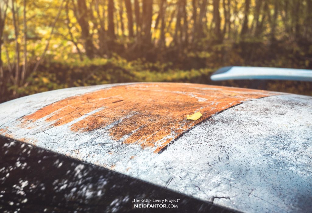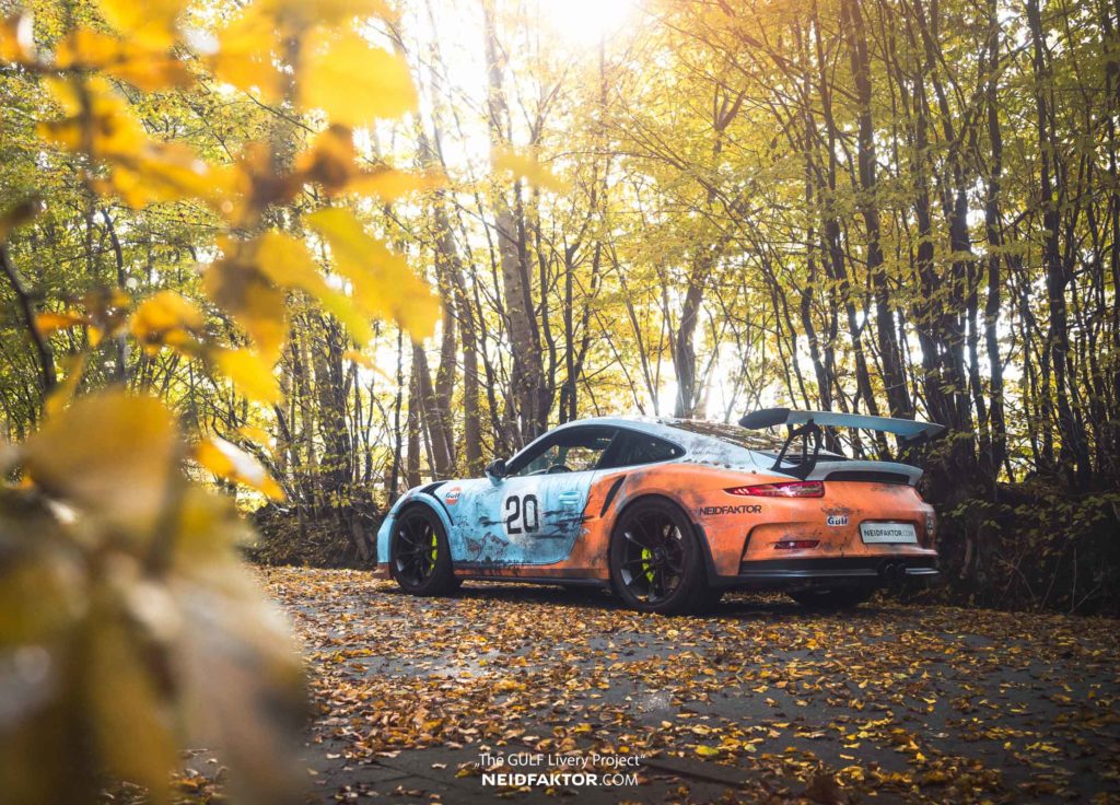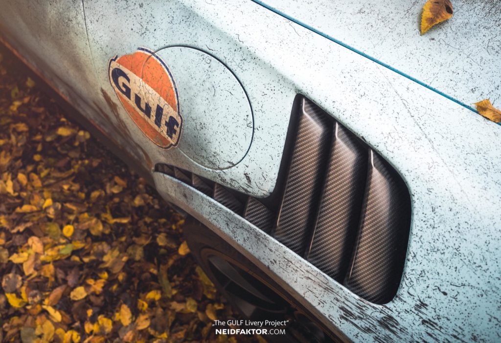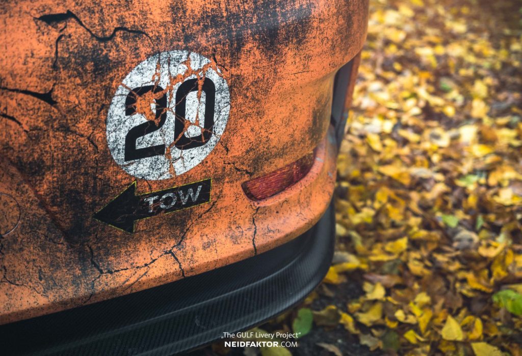 A Gulf legendás világoskék-narancssárga mintája szinte minden versenyautón nagyszerűen néz ki, legyen szó akár a Ford GT-ről, akár egy Porschéről, mint ez a 911 GT3. De a rajta lévő harci sérüléseket, guminyomokat, horzsolásokat, repedéseket és rozsdafoltokat nem egy 24 órás futamon szerezte.